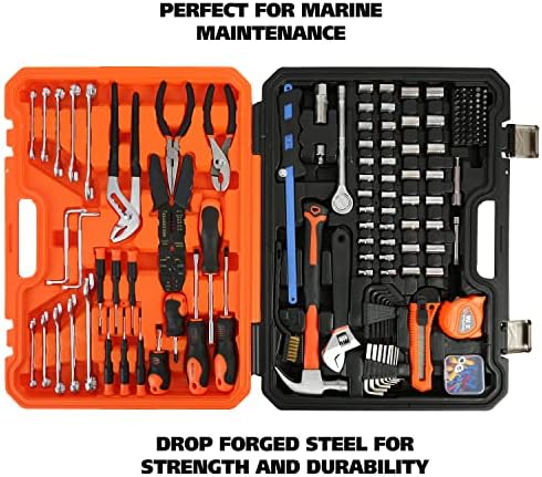 Comprehensive Onboard Tool Coverage: Covers common maintenance needs for boats, trailers, and small engines with SAE and metric socket set, wrench set, pliers, and drivers for fast, reliable repairs on the water or at the dock.