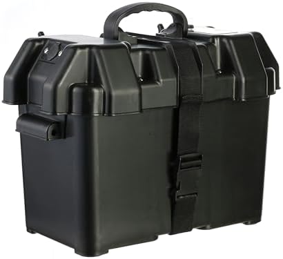 PRODUCT DIMENSIONS: 17 x 12 x 10 Inch, Fits Group 24 & 27 batteries, LED meter measures battery charge level (battery not included), Non-slip rubberized feet keep your battery box in place.
