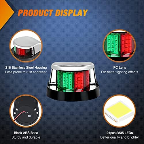 Excellent LED: The light is equipped with 24pcs (12pcs red and 12pcs green) high-quality 2835 LEDs. Able to output higher light while reducing consumption. The illumination angles of red and green light are both 112.5°, helps ensure safe night navigation.