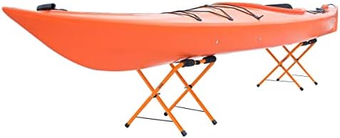 PRODUCT DETAILS – Materials: Powder-Coated Steel, Rubber, and Nylon. Dimensions: (H) 17″; Folded: (L) 16″ x (W) 6.75″ x (H) 23″. Includes: 2 Kayak Racks for Storage and a Mesh Carry Bag. Color: Orange and Black.