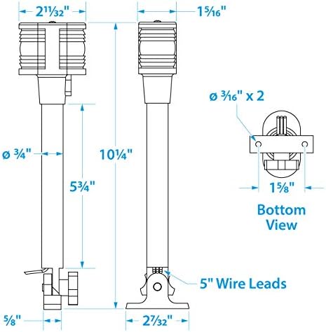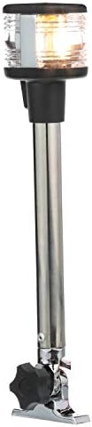 This Seachoice Fold-Down Masthead and All-Round White Light provides reliable illumination to ensure that your boat is highly visible on the water, and it can be conveniently folded down during daylight hours or when the boat is covered. This light provides 3-mile visibility for sailboats or powerboats under 66 feet. It mounts vertically and has a ¾-inch-diameter anodized aluminum tube, clear lenses, and it comes with two 12V DC/8 CP lamps that provide outstanding lighting. The chrome-plated zinc base is pre-drilled to accommodate a pair of #8 screws for easy installation. It comes with two plastic adapters so the light can be mounted flat or as a “V.” This light is 10-1/4 inches high and the base measures 2-7/32 inches L x 5/8 inch W. Seachoice is committed to delivering quality marine accessories and OEM replacement parts to satisfy fishing, boating and watersports enthusiasts worldwide. Seachoice is run for and by boaters, offering a wide-ranging product line while remaining affordable.