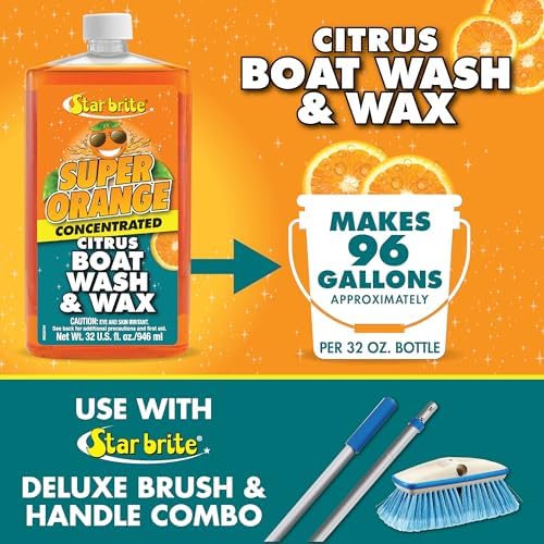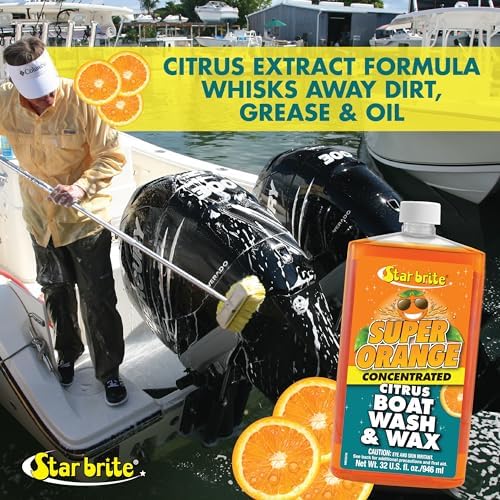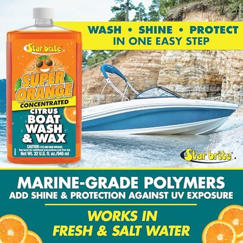 Discover the power of STAR BRITE Super Orange Citrus Boat Wash & Wax – the pinnacle of boat care solutions. Our unique formula, enriched with the essence of citrus, ensures a deep clean while imparting a protective wax layer. Whether you’re battling salt deposits, grime, or fish blood, this wash & wax stands up to the challenge, leaving your boat with a radiant finish. Ideal for all boat types, it’s designed to be gentle on surfaces yet tough on dirt. The concentrated solution ensures that a little goes a long way, offering value and reducing waste. With its delightful citrus aroma, cleaning becomes a refreshing experience. Trust in STAR BRITE’s legacy of quality and performance, and let your boat shine brighter than ever.